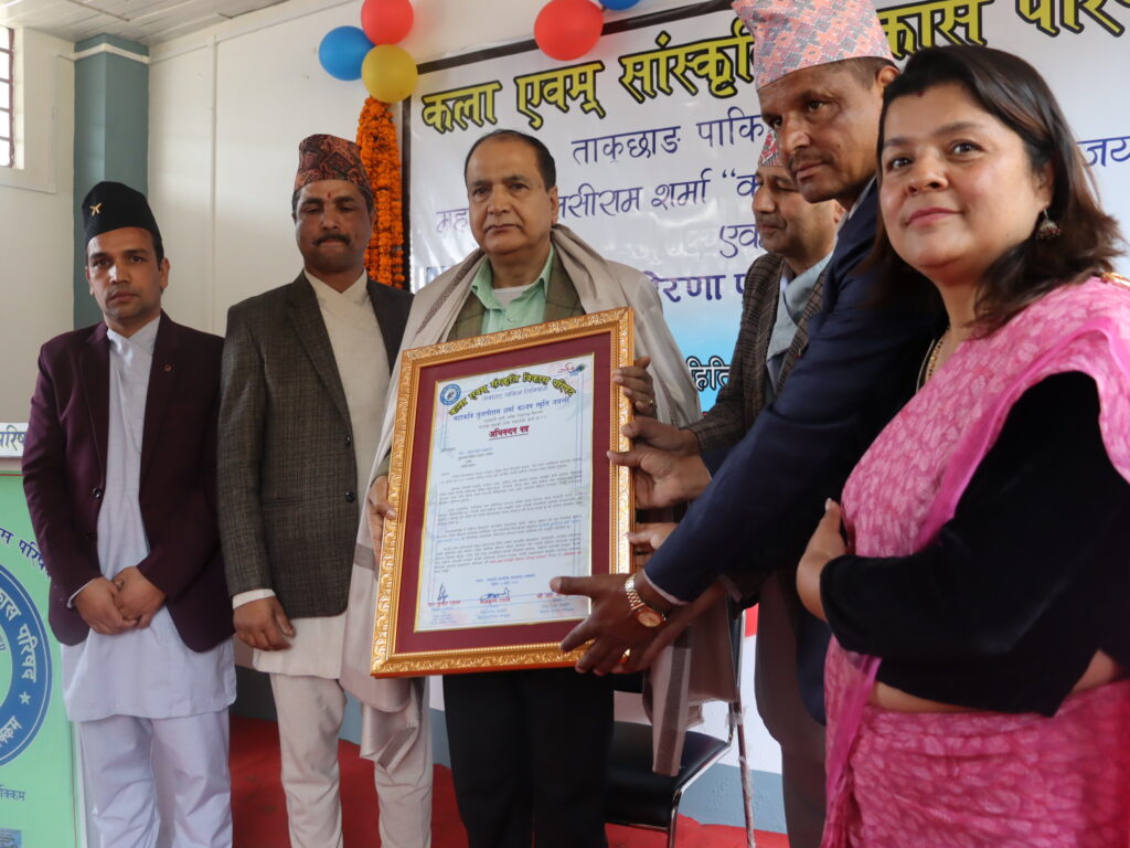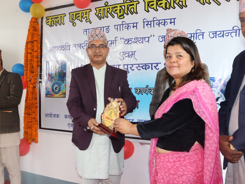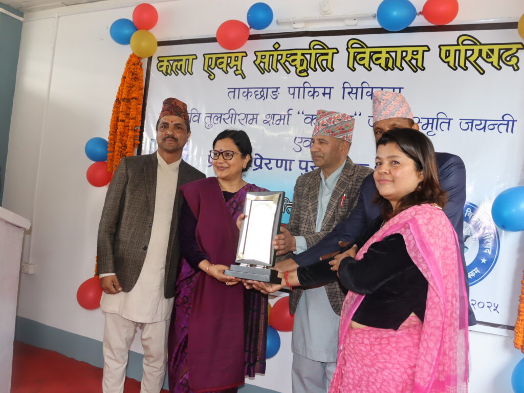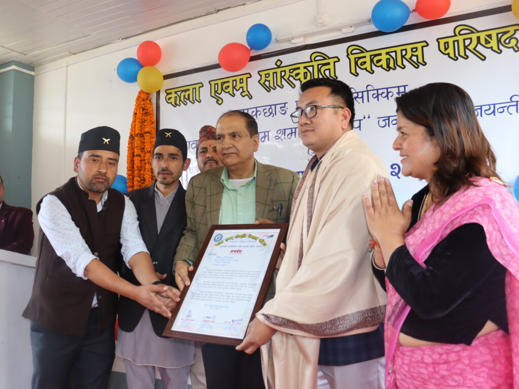 सिक्किमे समाजलाई साहित्यिक एवम् सामाजिक क्षेत्रमा योगदान पुर्याउन सफल व्यक्तित्व कार्यक्रमका मुख्य अतिथी डाक्टर शंकरदेव ढकाललाई कला एवम् संस्कृति विकास परिषद् ताक्छाङले दोसल्ला ओढाएर अभिनन्दन एवम् सम्मान जनायो ।
