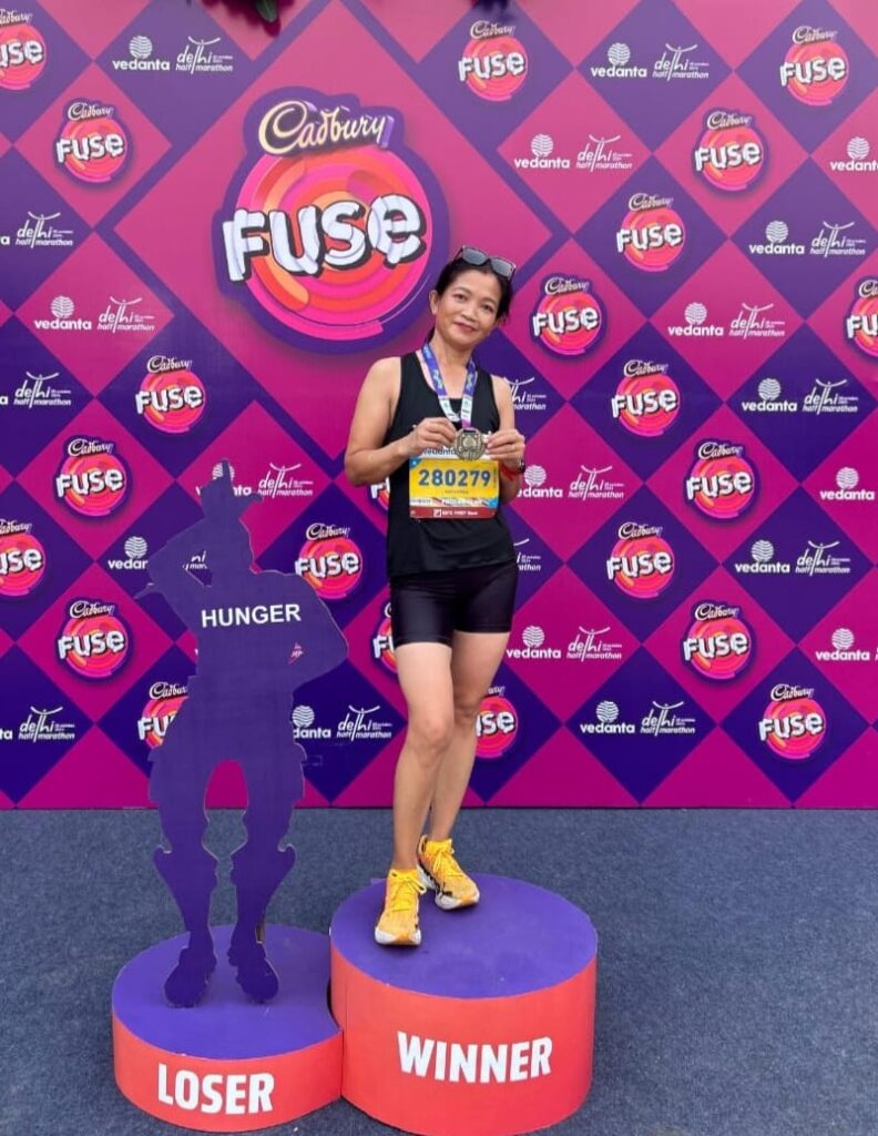 सरस्वती राईले आफ्नो उमेर वर्गमा वेदान्त दिल्ली हाफ म्याराथन जितिन्