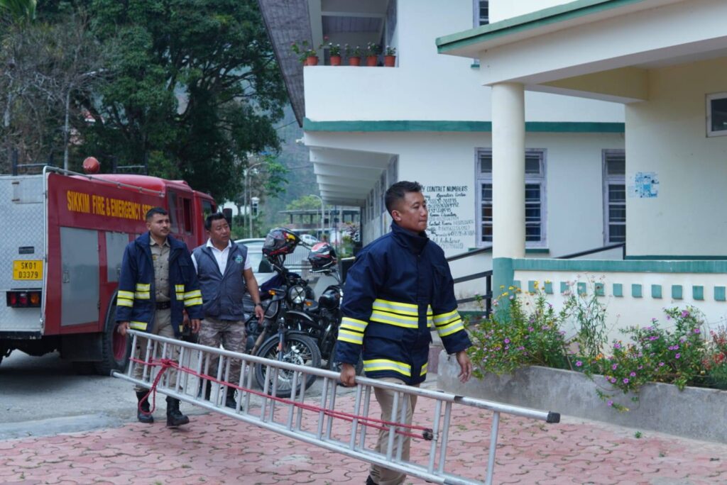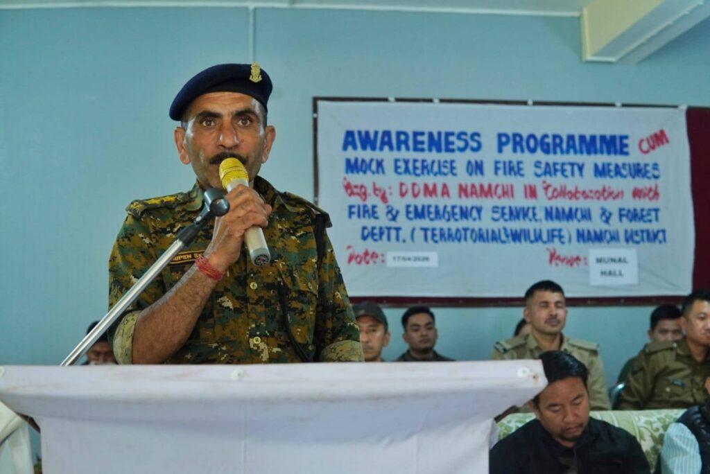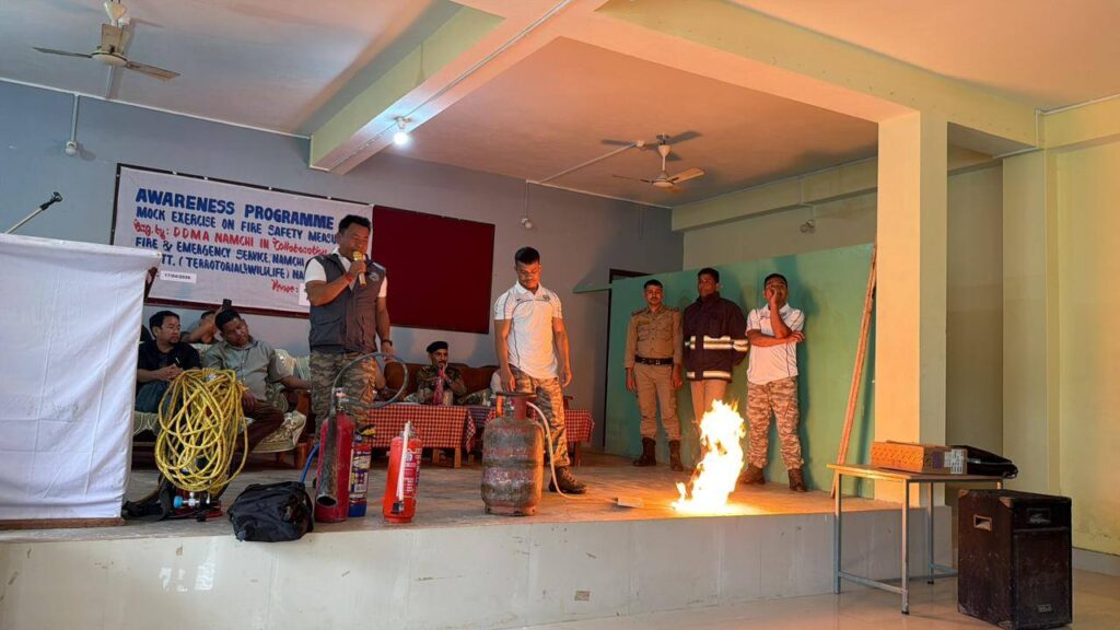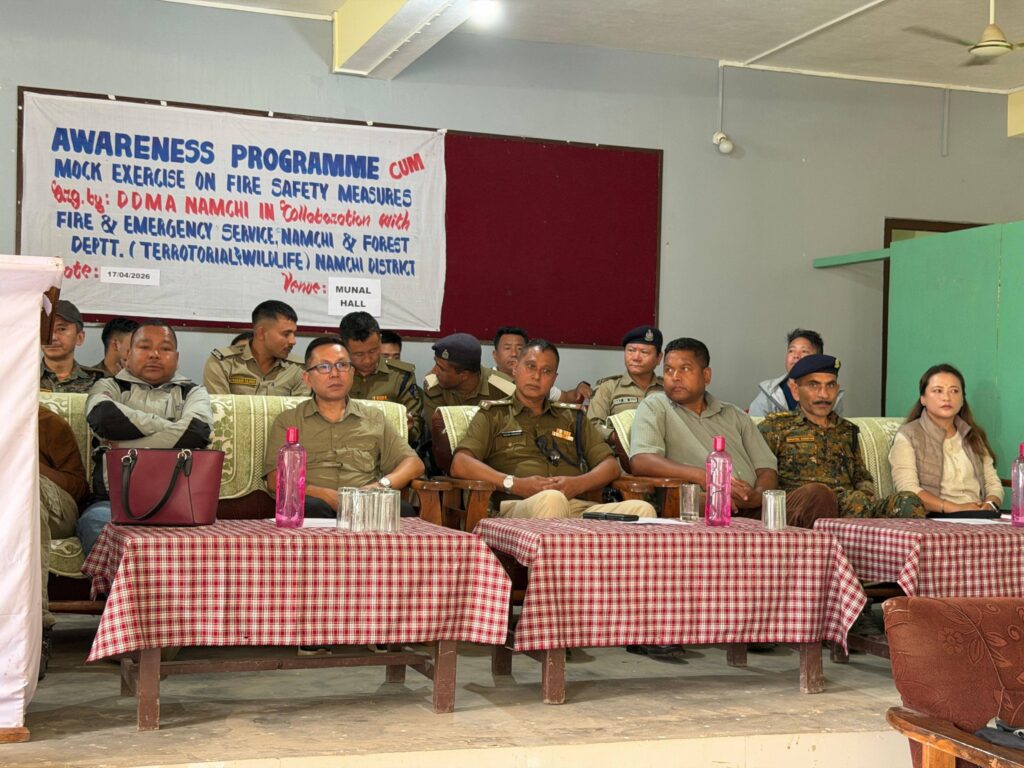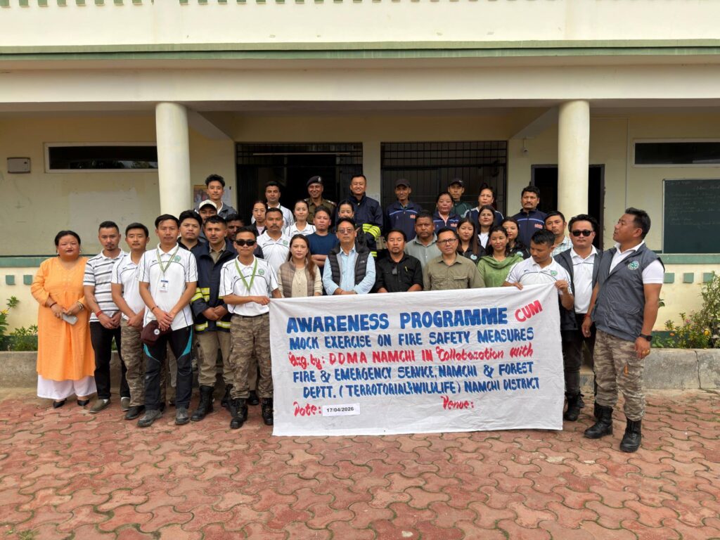 Namchi, April 17: In observance of the National Fire Service Week 2026, the District Disaster Management Authority (DDMA), Namchi organised an awareness programme-cum-mock exercise on fire safety measures at Kitam Senior Secondary School. The programme was conducted in collaboration with the Fire & Emergency Services and the Forest, Environment & Wildlife Department.