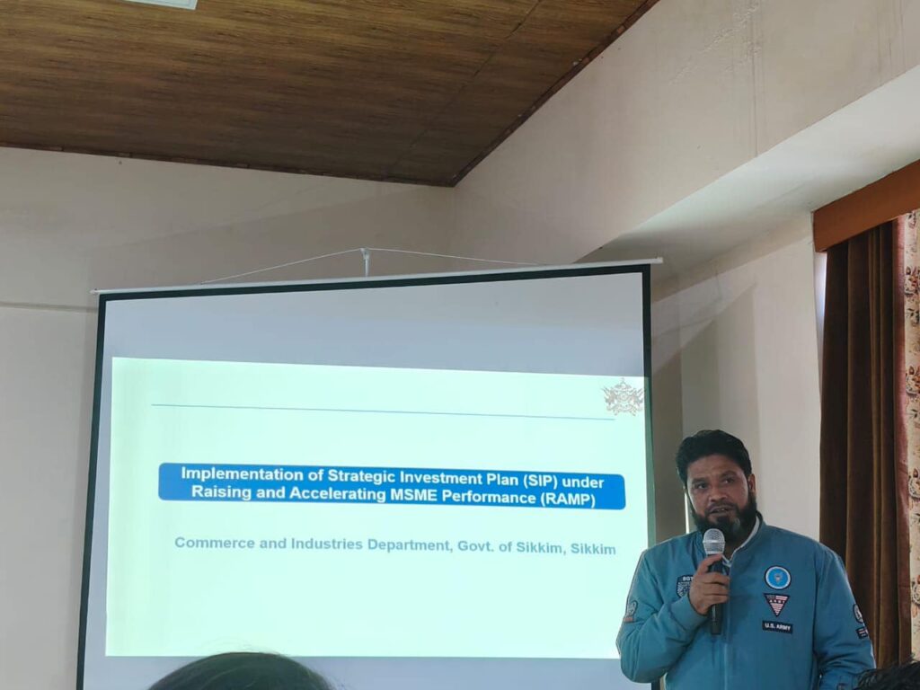 Likewise, Mr Jiaul Chaudhary, Capacity Building Expert of SPIU, RAMP, delivered a presentation on the Raising and Accelerating MSME Performance (RAMP) scheme, focusing on its objectives and key features, particularly the implementation of the Strategic Investment Plan (SIP) with an emphasis on approved interventions for Sikkim.