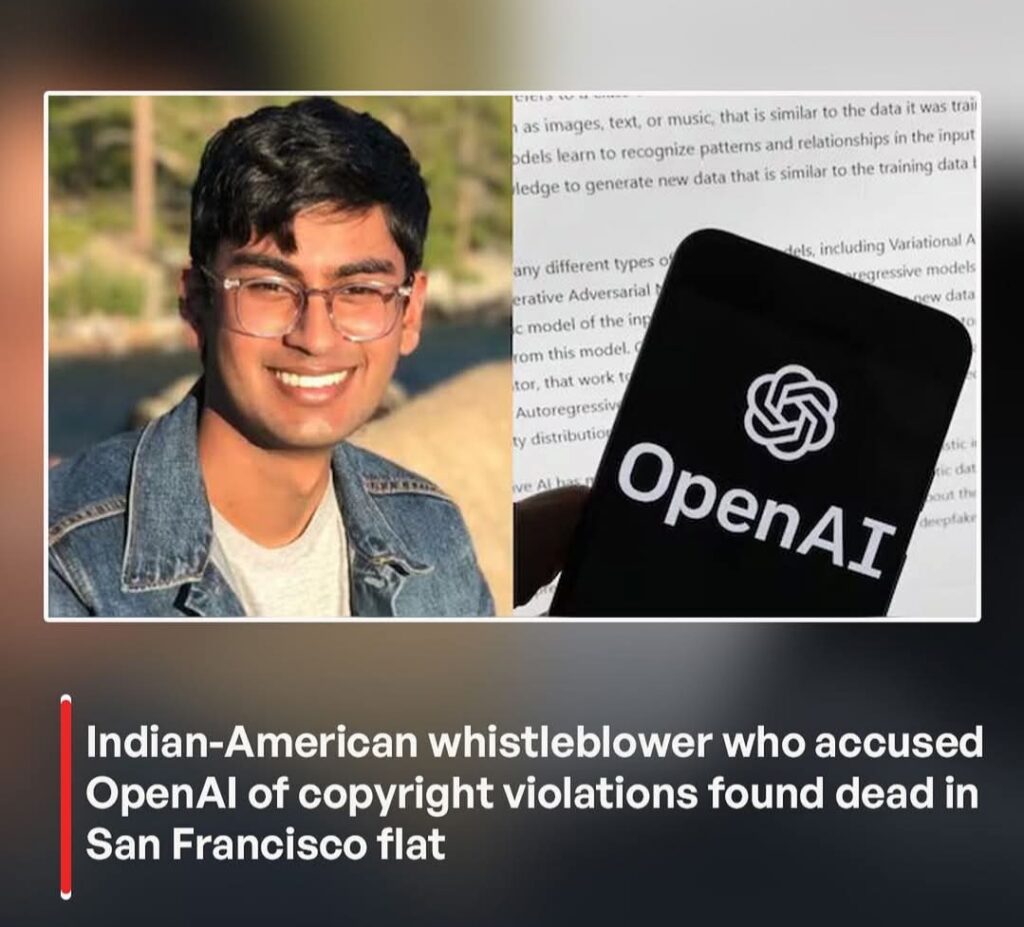 OPENAI AND CHATGPT WHISTLEBLOWER, WHO ALLEGED COPYRIGHT BREACH, FOUND DEAD